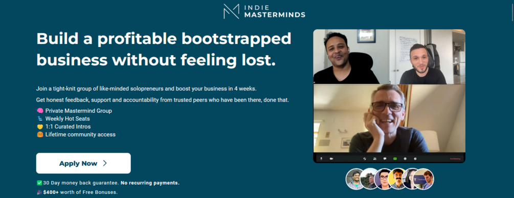 Here you will join a private mastermind group of like-minded solopreneurs, all striving to build a profitable bootstrapped business.